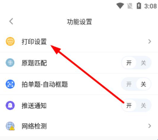 3、在功能设置页面里,点击打印设置选项,进入打印设置界面。