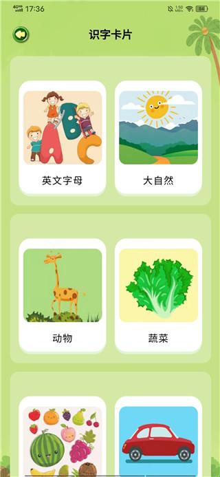 2、选择识字卡牌,有多个分类的相关词语可以学习。