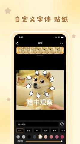 1、可添加文字、选择自己喜欢的字体和颜色;自定义图片。