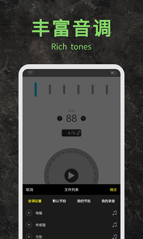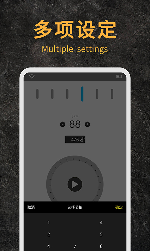 节拍器助手是一款专注于帮助音乐爱好者记忆节拍节奏的手机应用。软件页面简洁,操作起来也非常简单,您可以自定义节拍,音调丰富,满足了爱音乐人士的日常所需,同时支持节拍存储,将自己录制的作品储存下来,非常棒的一款软件,快来下载体验吧!
