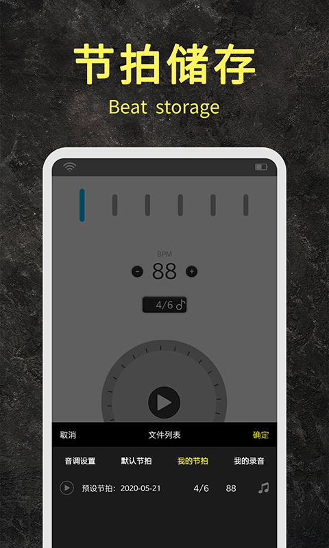 2、保存自己的节奏,并支持录音功能。