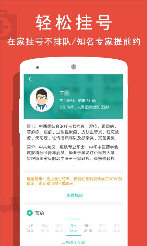 1、预约挂号:提前预约挂号,名院名医任你挑选,不再烦恼挂不到专家号,跟排队挂号说bye bye。