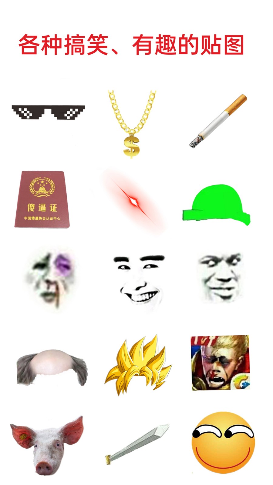 1、海量恶搞贴纸,没有好看的,只有丑的,绝不含糊。
