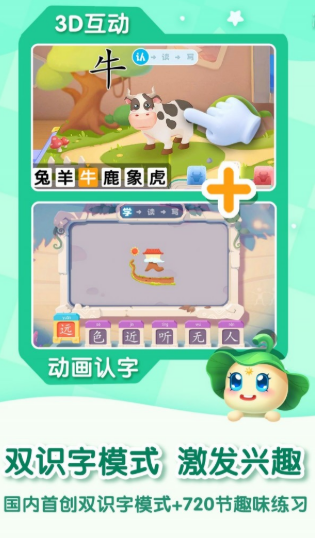 1、专为孩子定制720节识字游戏,多种益智互动, 让孩子在玩中学。