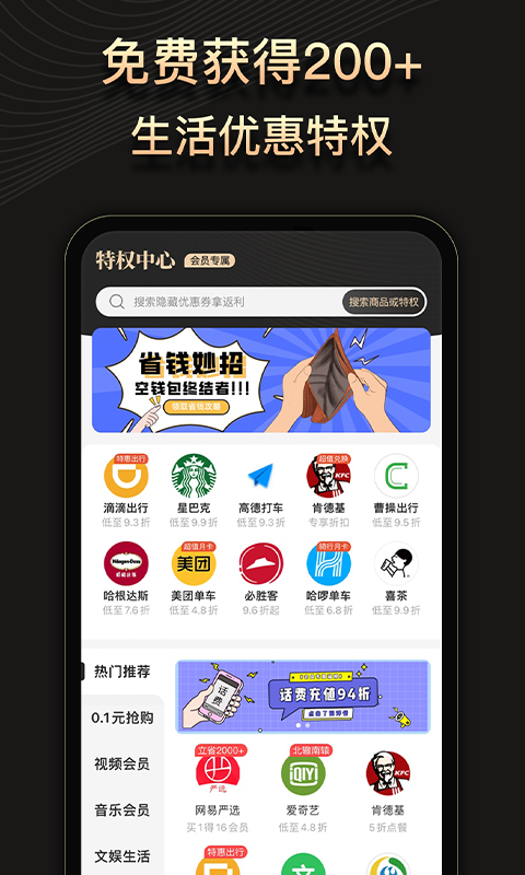 2、0.1元抢购热门APP会员,折上折等活动等你来
