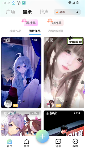 2、首页上栏点击壁纸进入页面可根据榜单或推荐选择。