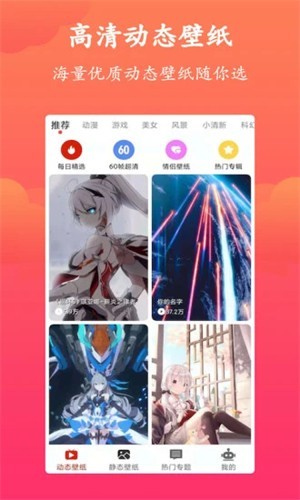 神奇动态壁纸是一款非常不错的壁纸软件,里面非常多的壁纸可以免费获取,不管是静态、动态都有,支持一键设置桌面、主题,海量优质壁纸供你选,各种动漫、游戏、美女等内容丰富,有需要的小伙伴们快来下载吧!