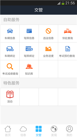 1、用户可以在线查看自己的车辆信息、驾照信息和违法信息,并及时处理。
