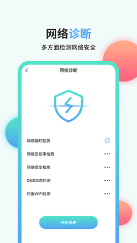 1、轻松设置就能进行快速的网络检测过程,分析网络的各种使用情况