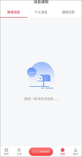 3、而在【消息】页面,我们还能查看所有的消息类型,如换电消息、个人消息、通知公告等。