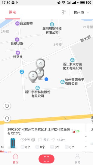2、通过地图信息用户可以开始查看附近的换电设备信息
