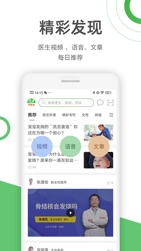 1、快速问医生中每天都会更新一些最新的医学资讯