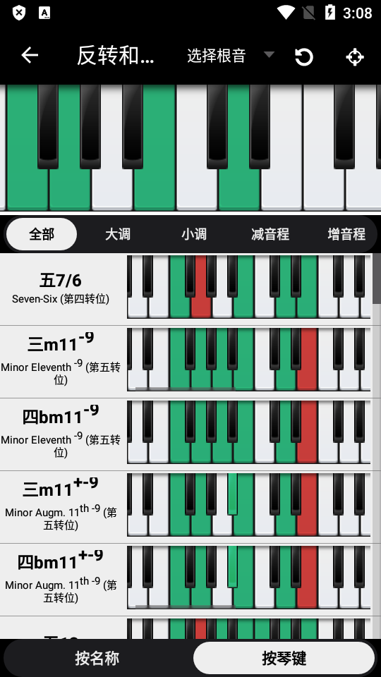 2、关系音阶的建议,使用键盘的和弦/音阶灵活搜索,1500+条钢琴和弦,包括第三转位。