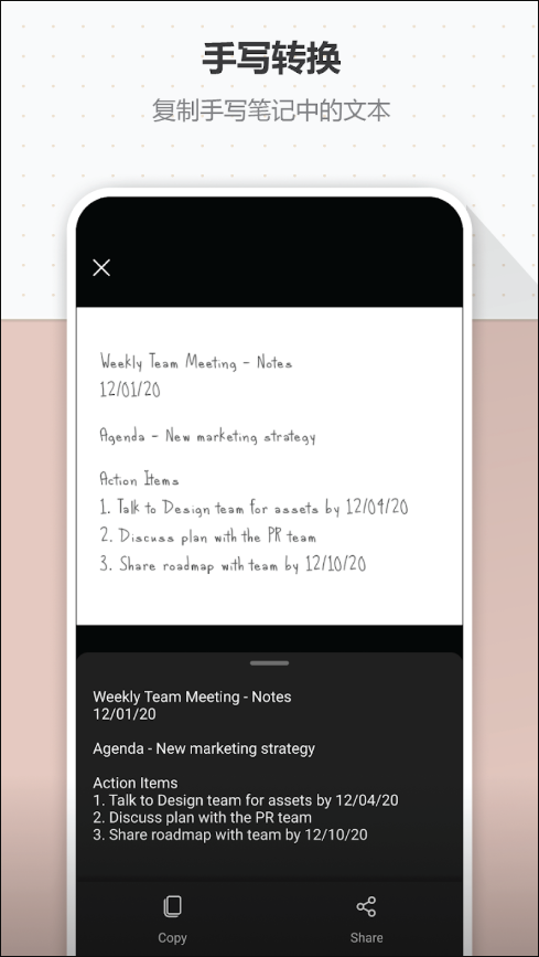 3.印刷文字将自动识别出来(利用 OCR 技术),你可以搜索.复制和编辑图片中的文字。