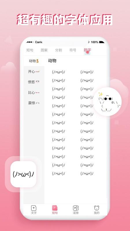 花样字体大全app是一个功能非常齐全且独特的手机字体设置软件,数千款精选字体颜文字资源免费使用,支持各大聊天平台和社交软件,让你打出的字更具吸引力。花样字体大全应用中拥有丰富免费的字体工具,能够让更多的用户在使用它的时候,一键快捷替换,有兴趣的小伙伴快来下载吧!