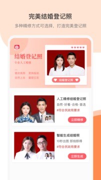 结婚登记照最新版是一款结婚证件照生成器,用户可以在该软件内体验到充满仪式感证件照,修出来的正装照是非常好看的,记录你的最美一刻。画质清晰,支持多种规格尺寸图片拍摄,满足日常多样场景拍照需求,价格也非常划算,非常实用,有需要的小伙伴们快来下载体验吧!