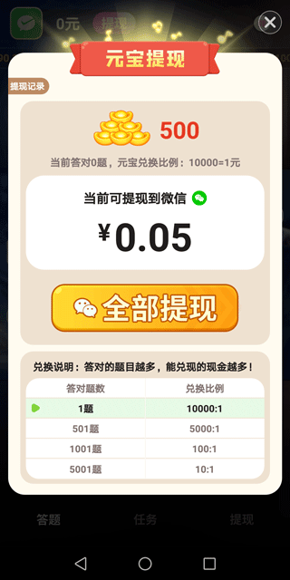 1、猜对一首歌≈0.3元,满3毛就能提现,真的不要太爽!