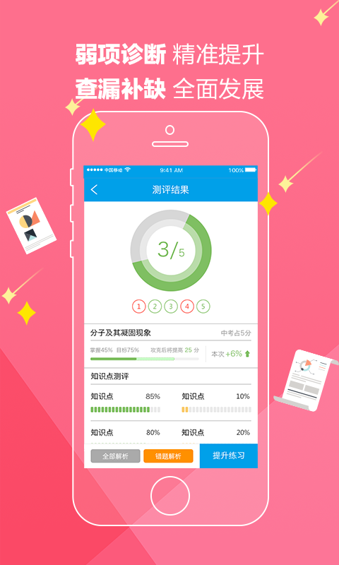 2、精准学习测评:知识弱项及时提醒,能力方法科学分析;