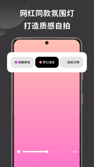 2、【梦幻渐变】为您提供了专属渐变色,您可以一键调节明亮度,打造氛围感自拍。