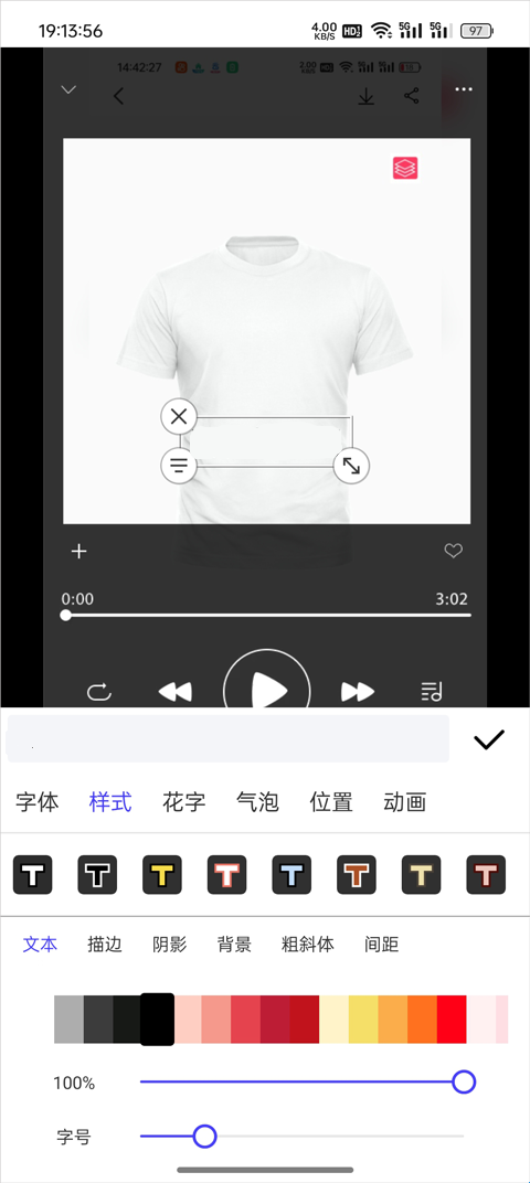 4、需要在视频内容中添加文本内容,点击【文字】,输入文字内容、设置样式、花字、颜色等等;
