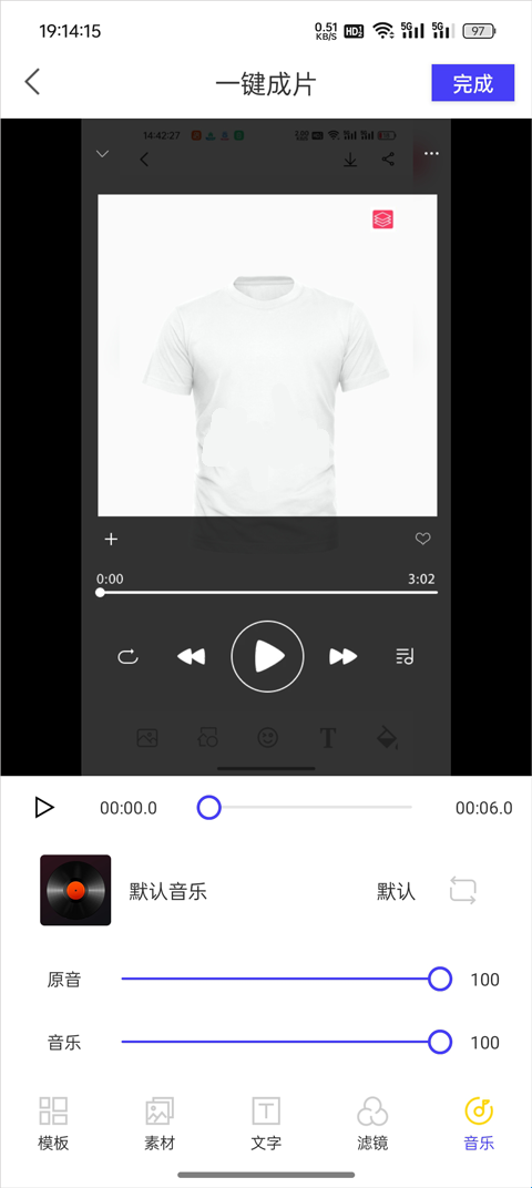 6、右下角的【音乐】,根据视频内容选择不同类型的配乐,如网络音乐、本地音乐、视频音乐;
