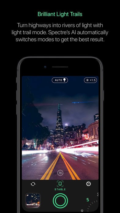 spectre相机app是一款全新的相机应用,spectre相机app能利用人工智能打造惊艳的长曝光效果”——the Verge,spectre相机app利用人工智能帮助您拍出带有惊艳长曝光效果的照片。Spectre可去除人群、将城市街道变为灯光之河、让瀑布看起来像画作等等。以前拍摄长曝光照片绝非易事:从保持相机稳定,到猜测需要的通光量都不简单。Spectre会为您搞定这一切!