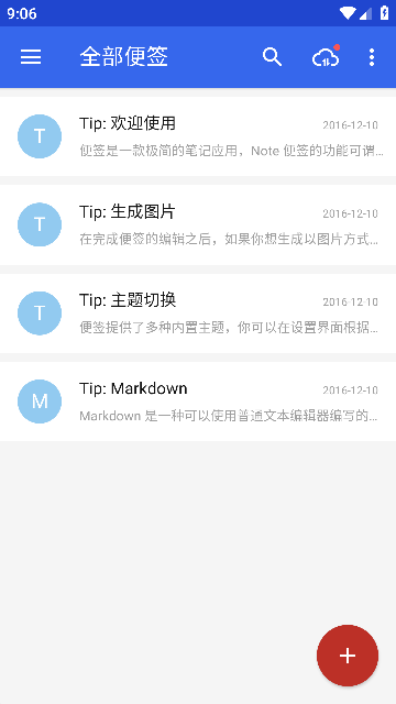 2、使用的是Material Design界面,在主界面可以通过右下角的加号添加新的便签
