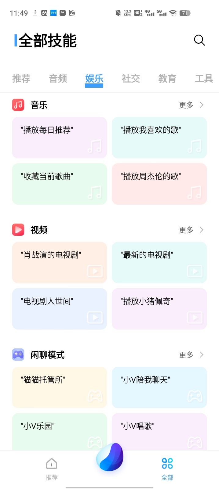 当你无聊,想找人聊天时或者心情不好时,对小V说“小冰”,即可进入聊天模式,小冰是一位很可爱的萌妹子,可以满足你很多的游戏要求。