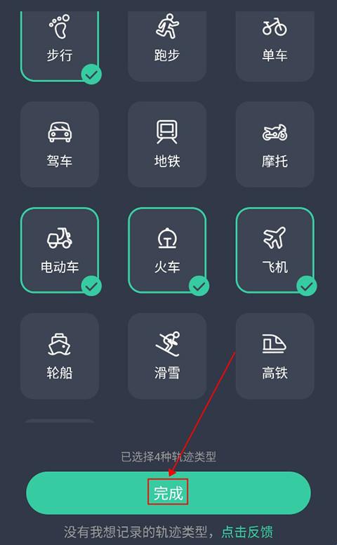 2、然后就可以选择自己常用或者要记录的运动方式,选择好点击下方完成即可。