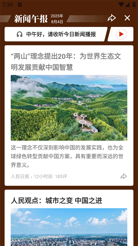 人民日报是一款优质掌上新闻软件,相比较其他的电子报软件,这里的信息来源更加可靠,权威发布,可以放心浏览,整合最新新闻资讯内容,界面设计和功能服务十分人性化,提供丰富多元化板块内容,全球国内外大小新闻实时同步更新,提供掌上看报纸模式,支持字体大小调整,人性化设计,实用便捷,满足各类用户需求,有需要的小伙伴们快来下载体验吧!