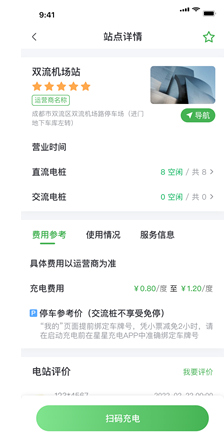 3、导航功能:内建地图,为您即时导航,指引到所选充电站。