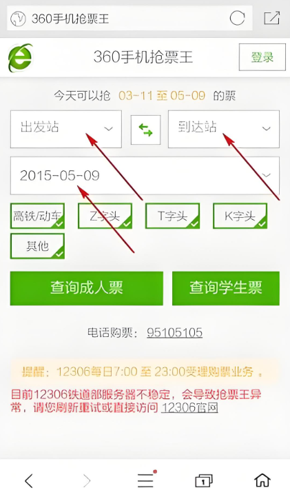 360手机浏览器抢票版全新上线,临近年关,为广大出行旅游、返乡回家等用户提供线上购票功能,非常好用的抢票工具,内置浏览器中,直接分类选择购票,操作非常简单,下面为大家提供操作教程,帮助用户快速购票!有需要的小伙伴们快来下载体验吧!