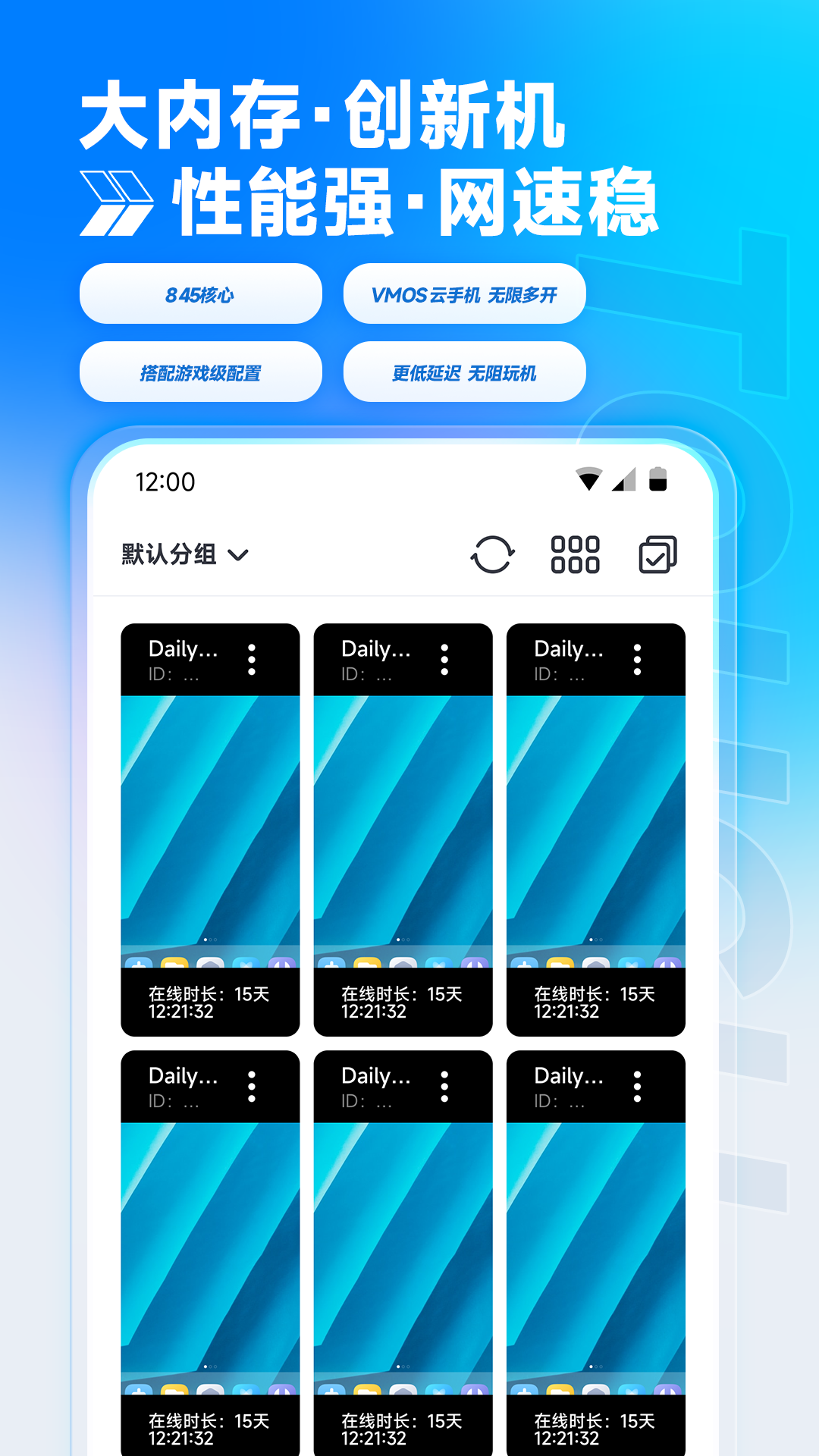 VMOS云手机是一款手机云电脑软件,非常适合广大玩家使用,该软件稳定性强,不管是手机养号、挂号等都是非常安全实用的,低延迟、流畅度也是非常不错的,支持无限多开,搭配游戏级别配置,使用体验也是非常不错的,有需要的小伙伴们快来下载体验吧!