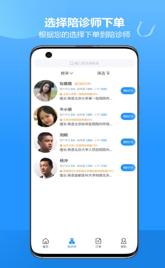 2、可以查看各位陪诊师的信息,并指定用户想要选择的陪诊师。