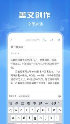 触手红薯写作软件app是一款写作工作者必备软件,该软件所提供的功能都是非常实用全面的,特色小说框架素材,为用户提供创作灵感,支持实时上传云端保存文案,审核快速,并且收益也是非常不错的,有需要的小伙伴们快来下载体验吧!