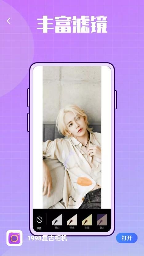 1998复古相机软件是一款免费复古相机,该软件可以帮助用户轻松拍摄各种类型复古大片,提供海量复古滤镜,同时支持自定义调整滤镜参数,让照片看起来更自然舒适,不管是人物还是风景都能轻松完成,有需要的小伙伴们快来下载体验吧!