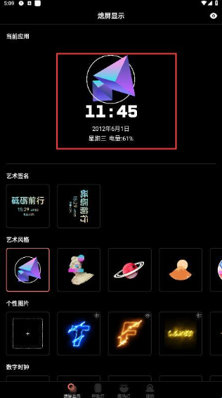 4、自定义功能让用户可以选择艺术签名、时钟等个性化内容。