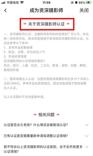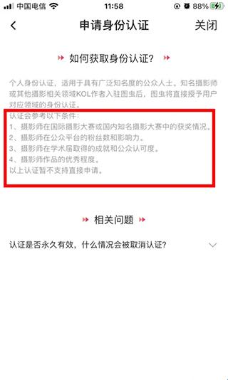 3、图虫认证一共有两种,一是身份认证,二是资深摄影师。