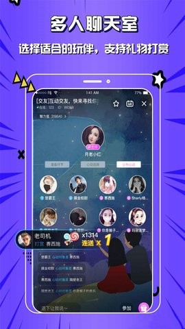 2、加入聊天互动,支持语音在线连接,帮助轻松满足各种社交需求,丰富娱乐时间