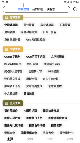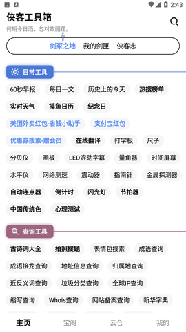 侠客工具箱提供了与文字、图片、音视频处理、设备、清理、文件、计算、查询、相关的200多种工具,基本满足您在日常使用手机时的所有工具需求。