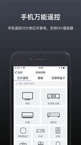 1、软件功能强大,直接用手机遥控电视、空调、风扇、机顶盒、网络盒子。