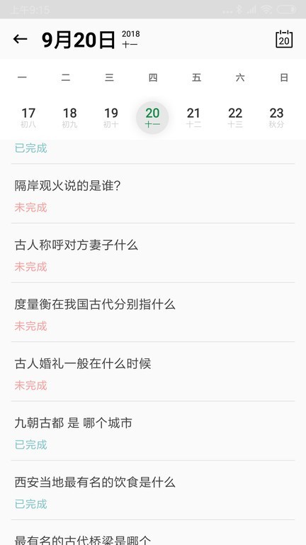 3、提供分析功能,图标展示自己的复习计划,未完成的复习;