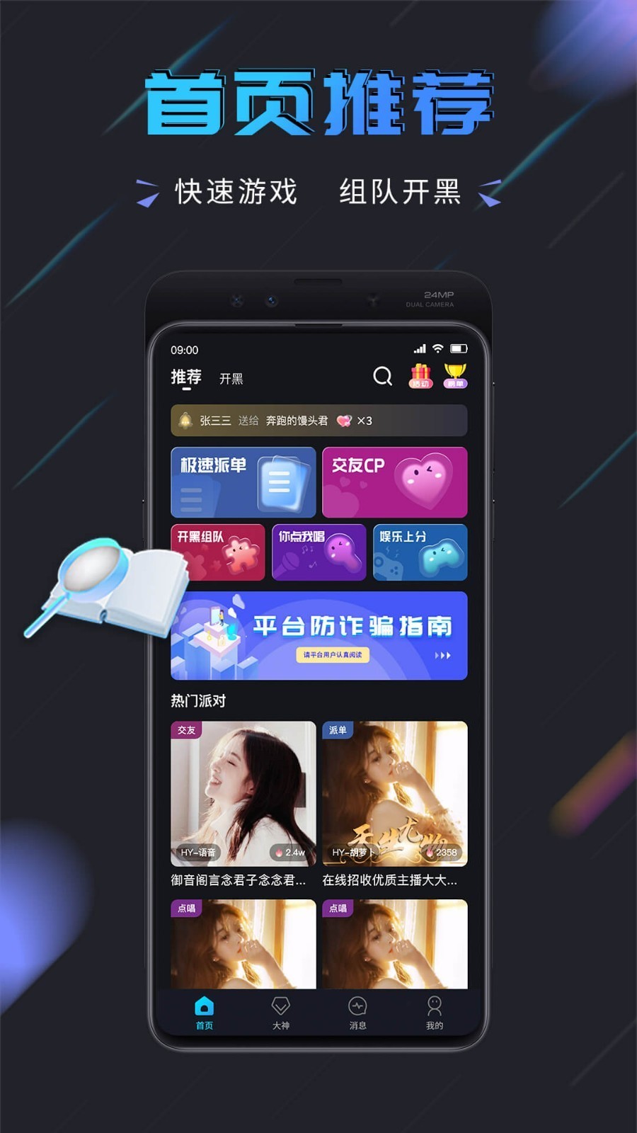 1、【游戏交友 组队开黑】24小时随时开黑,在线1v1连麦,畅享游戏的欢乐时光。