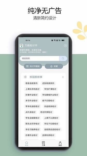 万能检讨书是一款自动生成检讨书的软件,该软件所提供的功能是非常实用的,可以为用户提供各种题材、场景、字数模板内容,该软件内也没有任何广告内容,同时也是支持自定义修改编辑文件内容的,自由度非常高,感兴趣的小伙伴们快来下载体验吧!